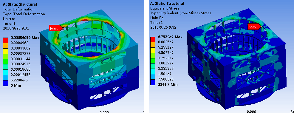 2.5转轴采用锻钢,尾部打深孔,转子支架外圈固定磁极,由于电机立式安装,磁极与支架之间形成了悬臂梁结构,为了防止因磁极重力拉弯支架辐板,在辐板两侧加装了撑架,改变了支架的受力分布,增强了其抗拉能力。