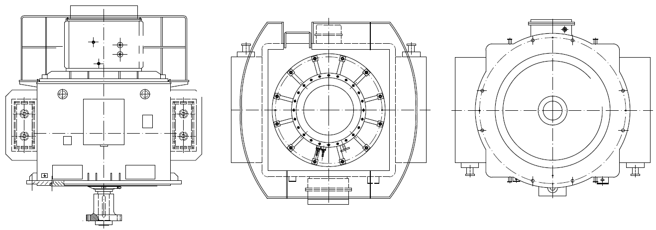 2.1机座采用箱式结构,钢板焊接制成。在轴向方向上,按功能划分,有通风、线圈端部、铁芯腔体,径向方向上,机座的四角用通长弯钢板、中部用通长50厚筋板进行加固,具有刚度好,支撑力强、承受扭转力矩强及重量轻的优点。上下端板及壁板都进行了必要的加厚处理,提高机座的刚度及电机振动时起到良好的阻尼抑制作用。